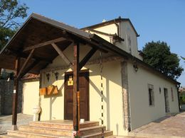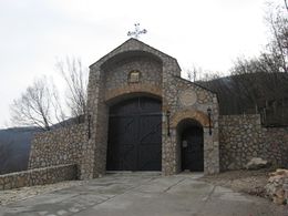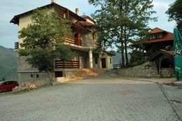В Овчар Бане есть гостиница для паломников «Дом». Около гостиницы находится 2 стоянки, внизу и наверху, если на подъезде к гостинице дойдёте до перекрёстка и не знаете куда – поворачивайте налево (дорога идёт вверх), не придётся тащить вещи по ступенькам с нижней парковки, а наверху места тоже достаточно.