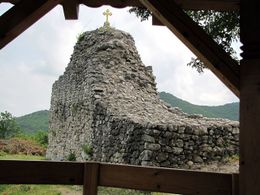 По преданию, на возвышенности здесь находилась трехэтажная башня, служившая, с одной стороны, сторожевой вышкой, а с другой стороны - колокольней. По звону колокола с этой башни начинались службы во всех монастырях ущелья. Это были своеобразные восточные ворота в ущелье, с западной стороны также существовала башня, которая была западными воротами. При опасности во время нашествия разбойников или турок монахи били в набат на башнях, чтобы предупредить остальных. Поэтому при одном из нападений турки разрушили башню.