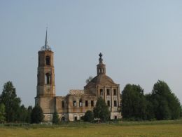 Каменно-кирпичная колокольня с одной главою, двухэтажное наподобие корабля здание церкви, каменное связано с колокольней. Стоит на высоком месте, в хорошую погоду видно из Котласа и с Болтинки.