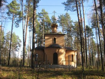 Храм преподобных Кирилла и Марии (Донино) Вновь сооружаемая небольшая кирпичная церковь в дачной местности, представляет собой равносторонний четырехконечный крест со скругленными завершениями в виде апсид.