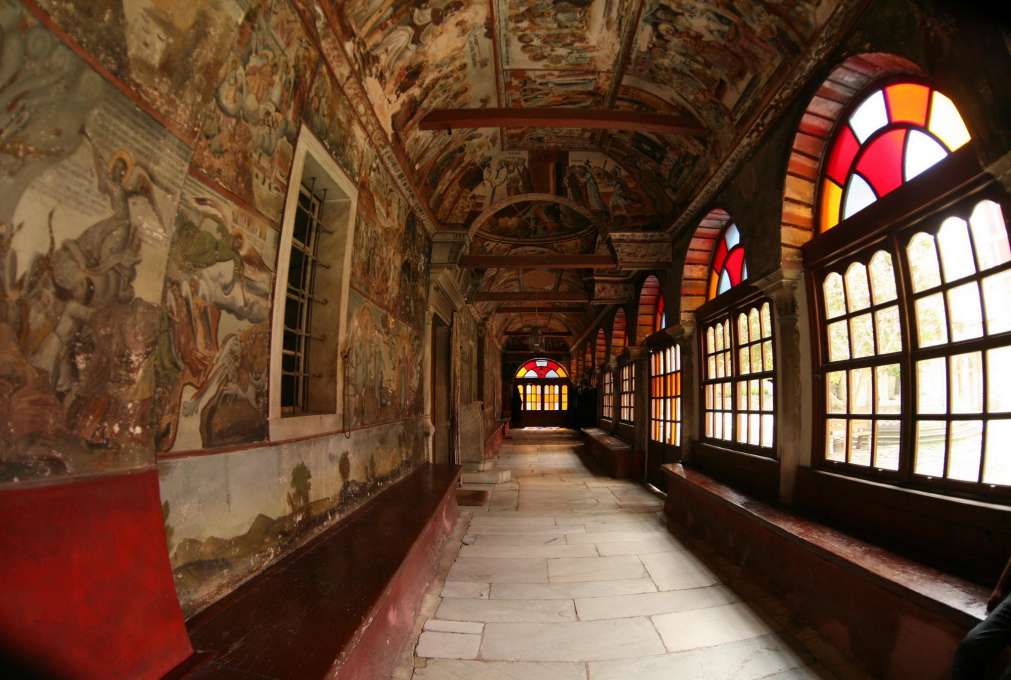 Длинная галерея притвора, традиционно расписанная сюжетами из Апокалипсиса.