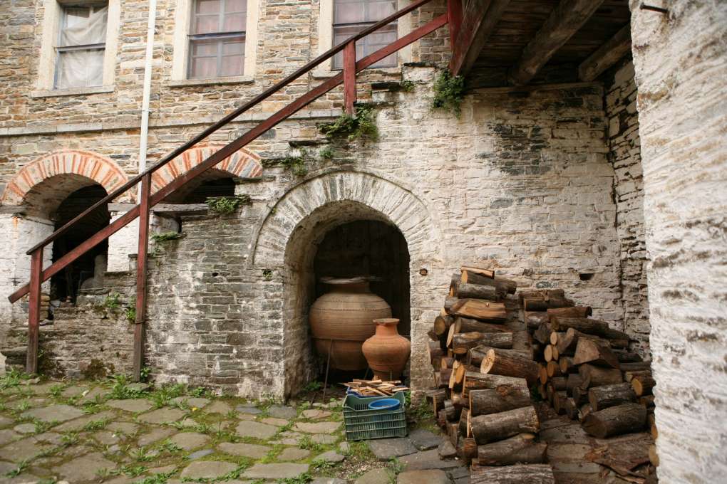 Или вот такое соседство века минувшего с веком нынешним: старинные кувшины и пластиковый ящик.
