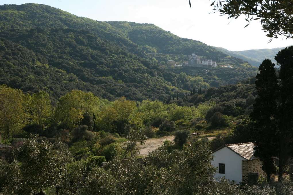 А на горе, в вечерней дымке, – другой монастырь, скит пророка Илии. Прежде это была русская обитель, но за советский период умерли все русские монахи, а новые не приезжали. Двадцать лет назад умер последний русский монах, и скит перешел к грекам.