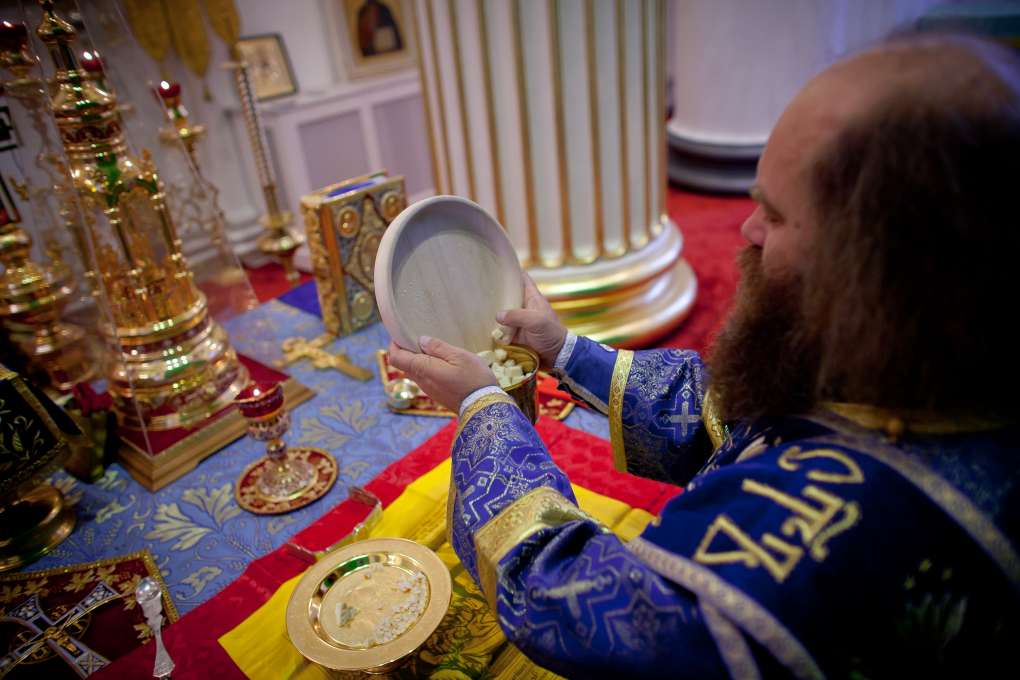 Прожевав и проглотив частицу, священник произносил: «Пусть сие будет мне в отпущение грехов, потому что вошла Святая и Пречистая Святыня. Да не останется во мне ни один грех, по милосердию Твоему, Боже…»