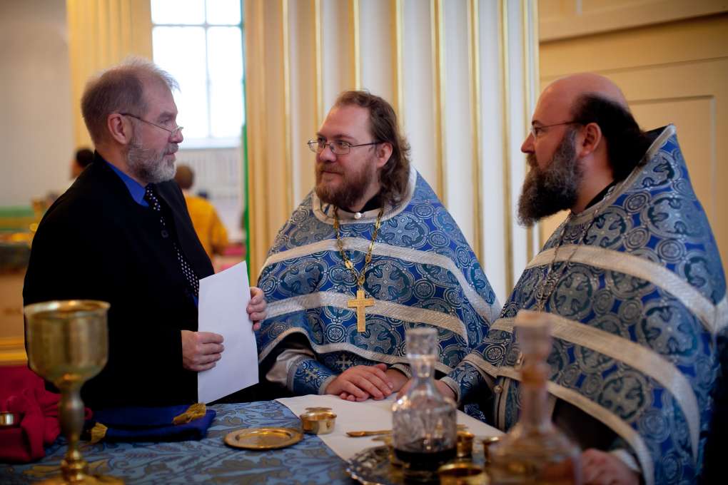 Тем временем чтец может прочитать несколько молитв перед Причастием, а священники – обсудить свои дальнейшие действия, например, какой молебен и как служить после Литургии и проч.