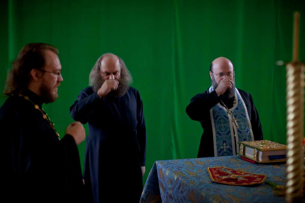 Когда приготовления закончены, а диакон расставил на жертвеннике, специальном столе в левой части алтаря, священные сосуды, священники и диаконы встают перед престолом и молятся. Затем они прикладываются к престолу… (Традиционно в церкви говорят прикладываются, а не >целуют.)