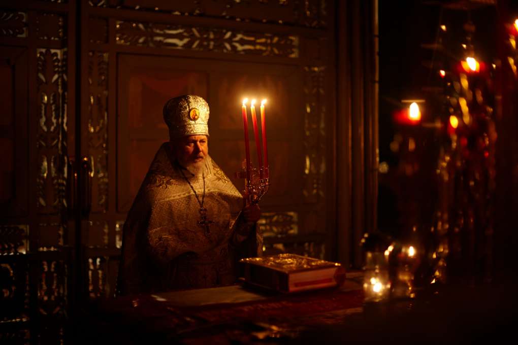 Весь свет в храме гасится, горят лишь свечи в руках молящихся. Этот момент символизирует тот мрак и ужас темной палестинской ночи, когда Спаситель лежал во Гробе и еще никто не знал, что будет дальше.