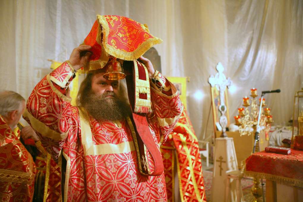 Великий вход. Мы переносим хлеб и вино на престол, где будем молиться о том, чтобы Бог сошел и Благодатью Своею претворил хлеб и вино в Свои Тело и Кровь.