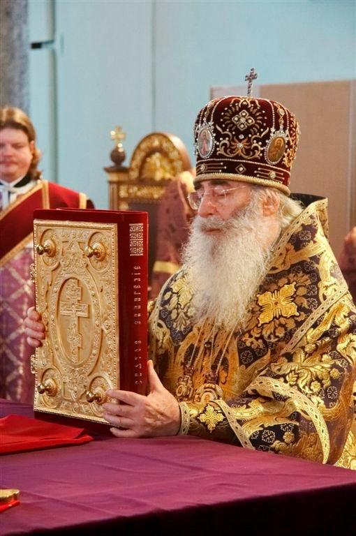 Начинается Литургия с возгласа: «Благословенно Царство Отца, и Сына, и Святаго Духа…» Предстоятель, произнося эти слова, делает Евангелием знак креста над антиминсом.