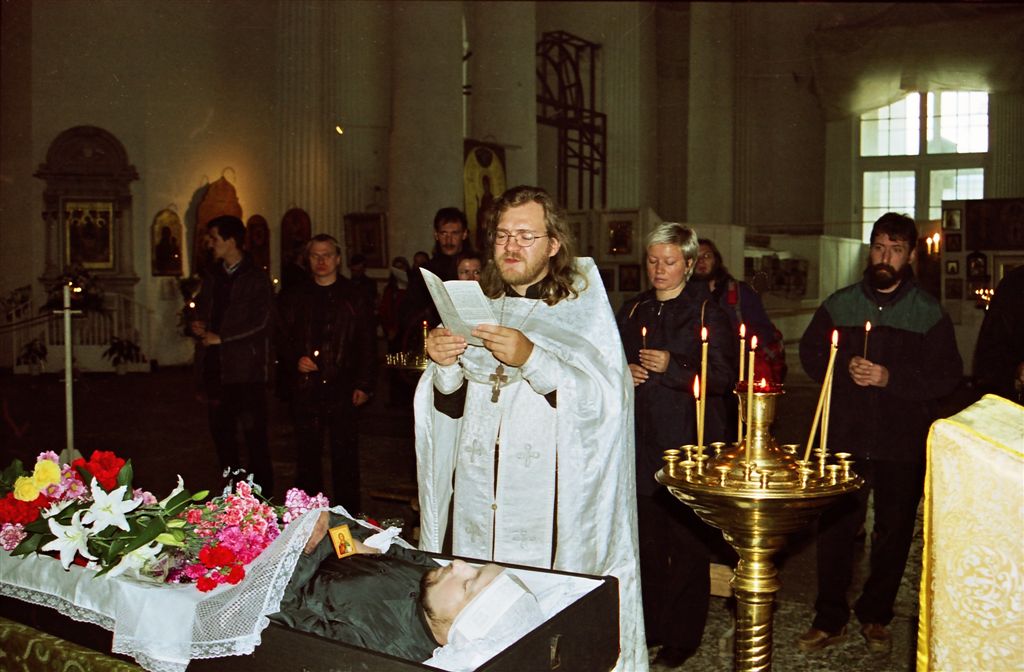 На фотографии мы видим как раз этот момент. Священник читает «разрешительную» молитву. Потом он эту молитву свернет и вложит в руки покойному.