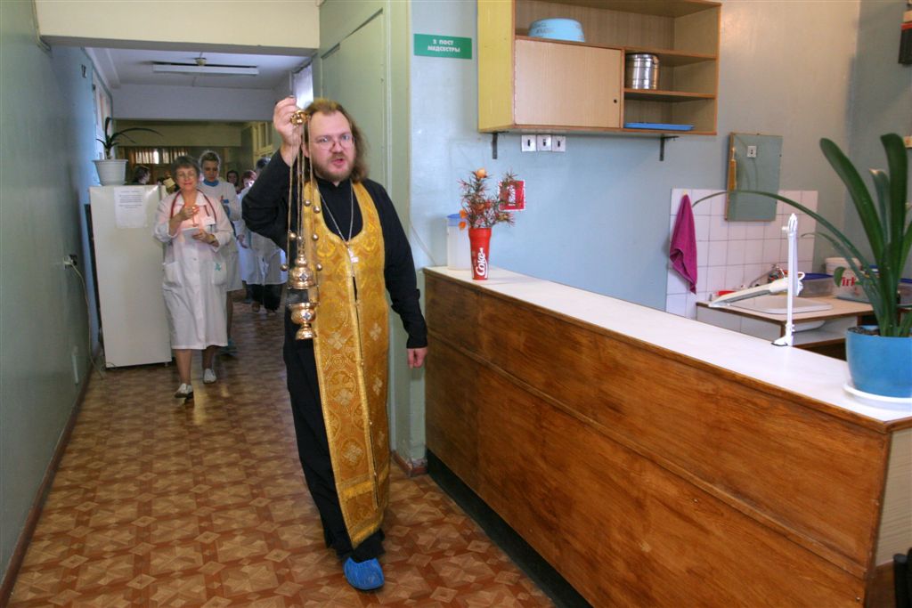 Никто не лишен благодати, священнослужители приходят и на завод, и в больницу. На этих фотографиях запечатлен исторический момент: в одной из петербургских больниц была открыта часовня.