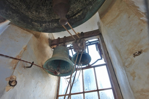После обеда мы прилегли отдохнуть: усталость от этого сверхнасыщенного дня все же сказывалась. Но мне не лежалось: вечером предстояло одно важное событие (о котором расскажу в свой черед), и я решила исполнить свое тайное желание: подняться на верх колокольни… Я хотела выйти на самый верх и поснимать фантастические, должно быть, виды. Но, увы, поднявшись сначала по винтовой лестнице, а затем по крутым каменным ступеням до самого верха лестницы, я увидела, что дальше пути нет…