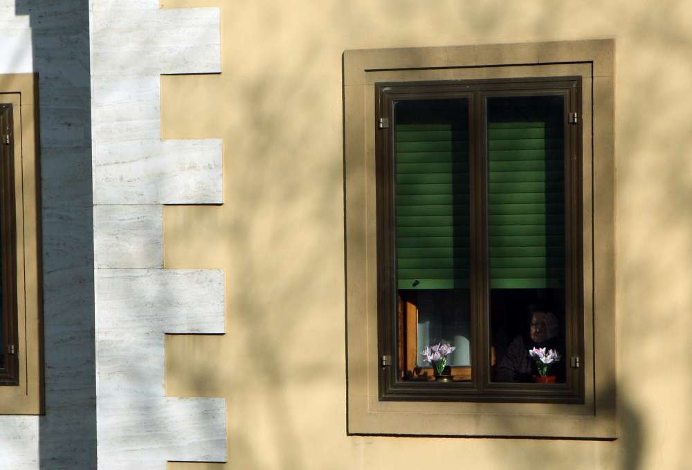 Мы уезжаем из Флоренции. Из окна автобуса фотографирую колоритные виды, дома. В объектив попадает старушка, которая грустно смотрит на проезжающие автомобили из своего окна.