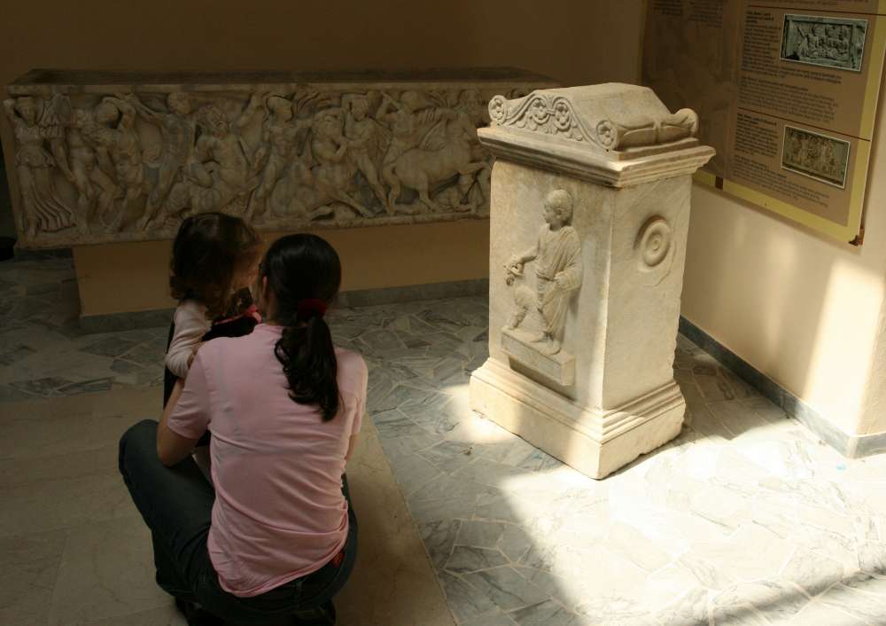Маленький древний алтарь, может быть, «детский», так как, кроме того, что он очень мал по размерам (сделан для роста ребенка), он изображает, как мальчик ведет на жертвенное заклание козочку.