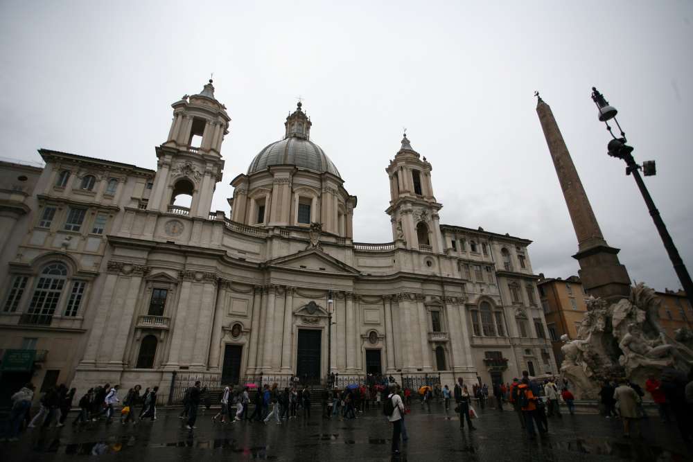 По этой площади мы ходили почти каждый день, идя от нашей гостиницы в центр города, нередко заходили и в храм, который вы видите. Этот храм посвящен замечательной святой: мученице Агнессе. Церковь была построена в 17-м веке на месте древней.