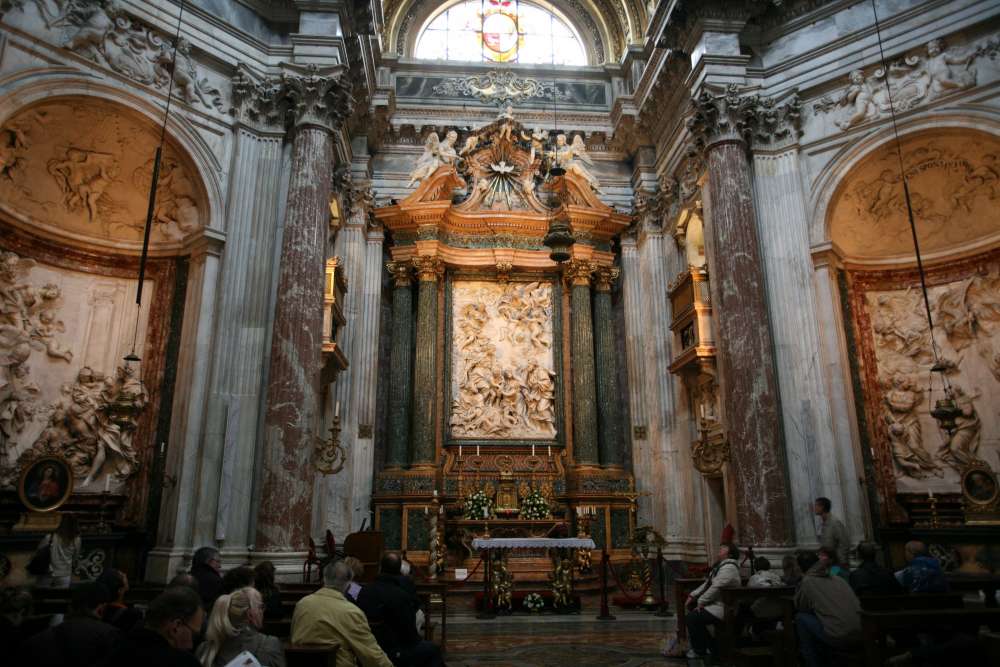 Храм святой Агнессы величественен, но эта красота какая-то легкая, воздушная. Храм не подавляет массивным золотом, в нем мало вообще золотых ноток. Юность мученицы подчеркивается голубым цветом, цветом небесной вышины.
