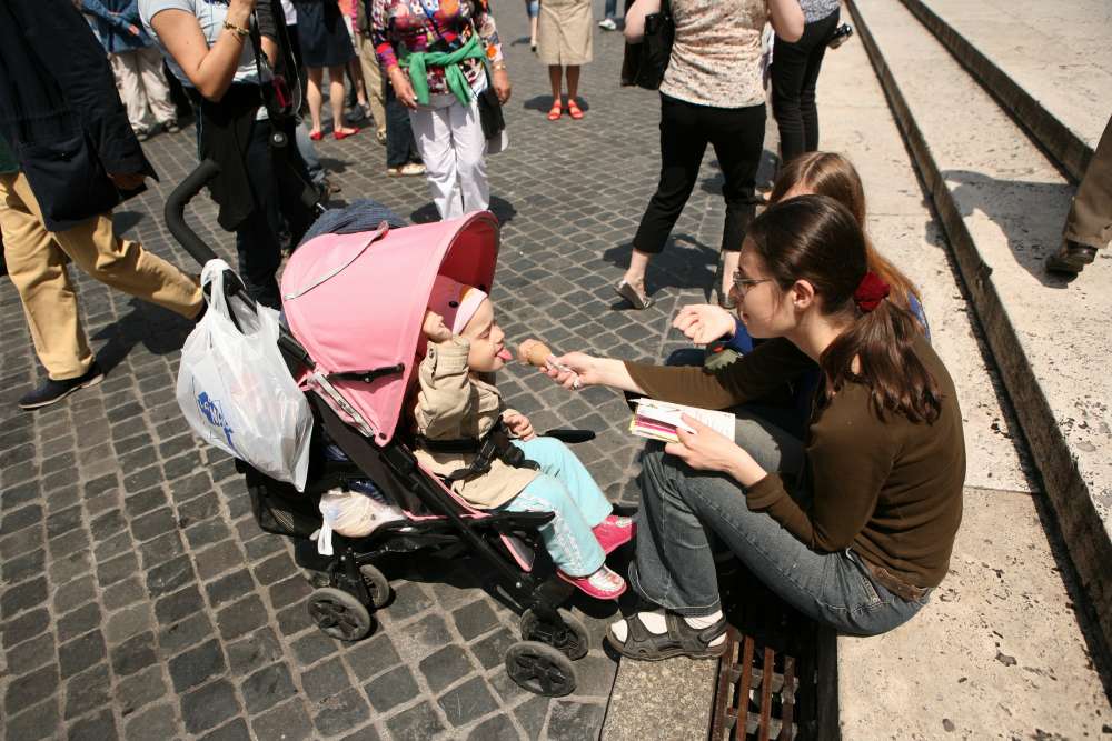 Я понимаю, что втащить ребенка с коляской на 138 ступеней в этот жаркий день мне не под силу. Прошу моих спутниц остаться внизу и покупаю им мороженое.