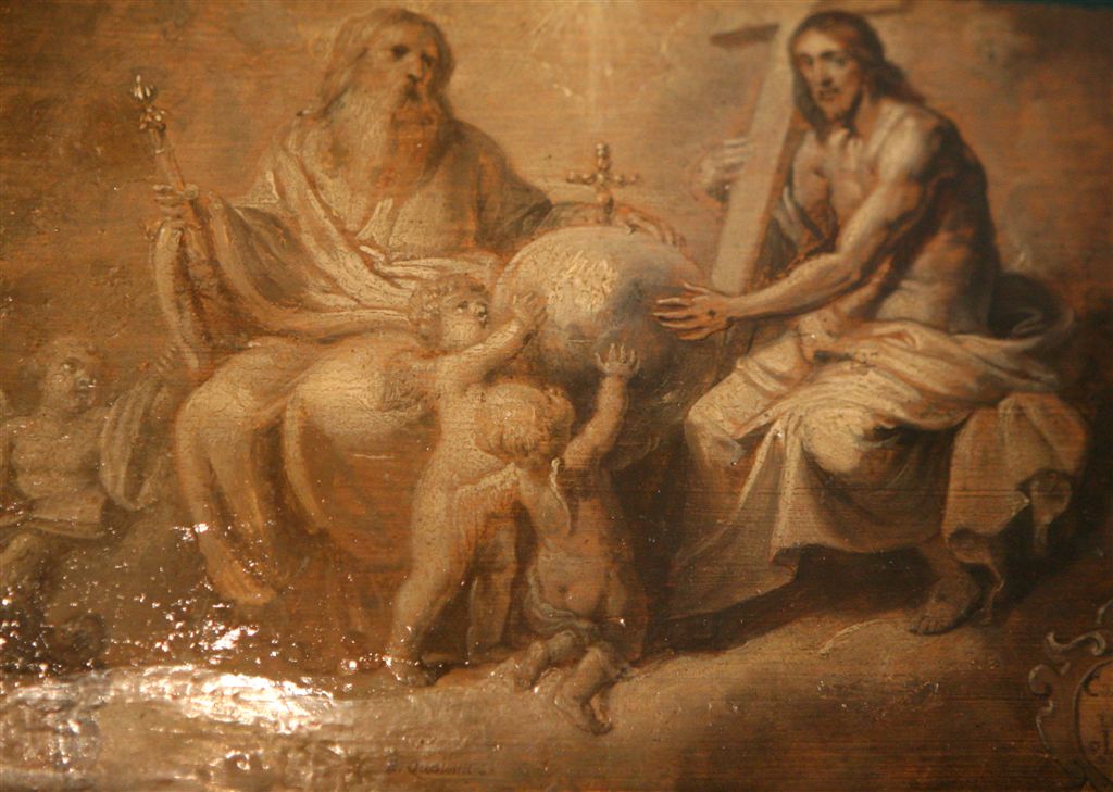 Картина эта интересна тем, что показывает, как Отец дает Сыну власть над миром, «воскресив Его из мертвых и посадив одесную Себя на небесах, превыше всякого Начальства, и Власти, и Силы, и Господства, и всякого имени, именуемого не только в сем веке, но и в будущем, и все покорил под ноги Его…» (Еф. 1, 20-13)