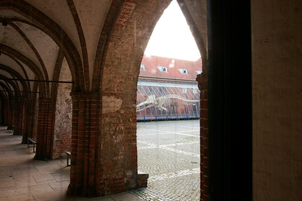И вдруг… Еще один сюрприз. Оказывается, к собору пристроен музей динозавров. Их кости в обилии находят в окрестностях Любека… У нас не было времени посетить музей, но прямо из окна храма я сделал фотографический снимок водоплавающего динозавра (плезиозавра?), выставленный в витрине музея.