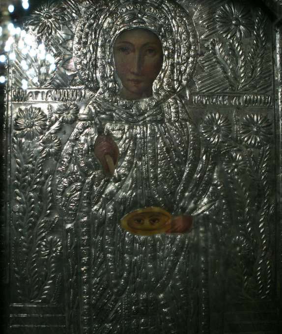 Современная икона св. Параскевы. Напомню, что это не та Параскева, что именуется Пятницей, а Параскева Римская. Она жила во 2-м веке и, как гласит предание, исцелила императора Антонина Пия от слепоты. Впоследствии приняла мученическую кончину за Христа.
