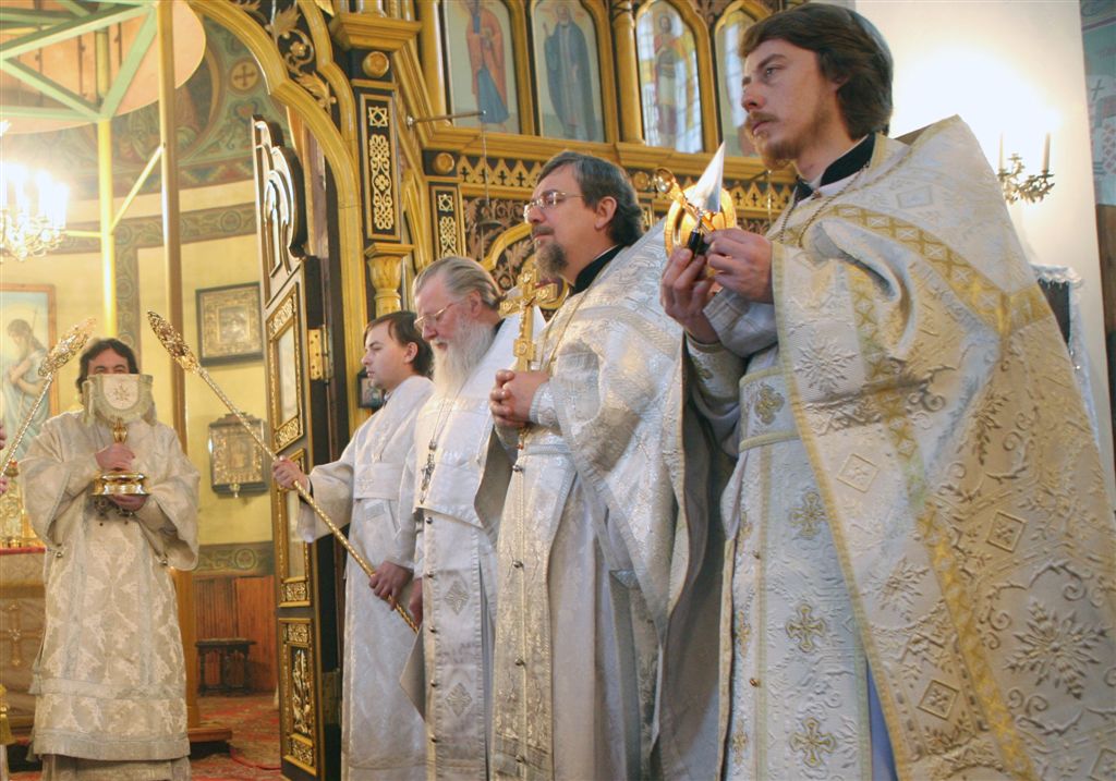 Епископ принял Чашу и произнес формулу поминовения всех служащих и всех молящихся в храме. Затем все входят в алтарь.