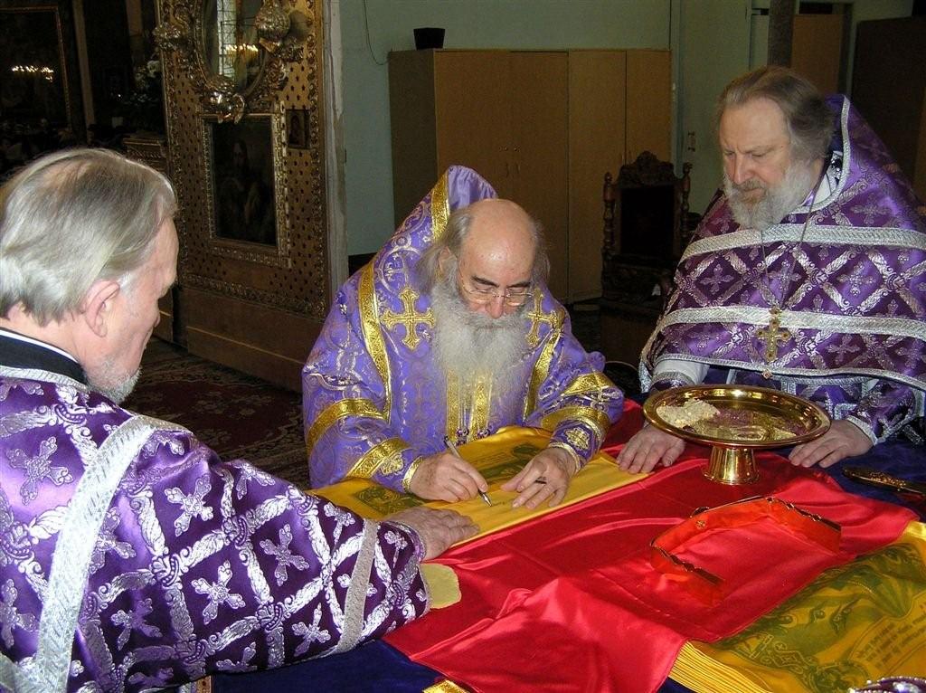 Наконец, после Литургии владыка надписывает антиминс для Казанского собора и оставляет его в храме. Остальные антиминсы, ненадписанные, увозятся в епархию.