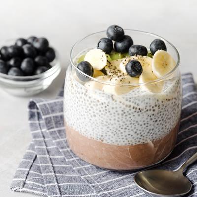Смешайте набухшие чиа с кефиром, мёдом, ягодами и кусочками фруктов. Разложите пудинг в порционные креманки и подавайте.