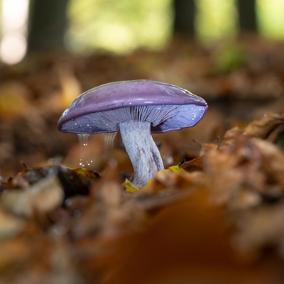 - Лаковица лиловая (Laccaria amethystina) значительно меньше размером, с тонкой волокнистой ножкой и белым споровым порошком