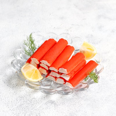 - Крабовые палочки представляют собой имитацию крабового мяса. Их делают из сурими – перемолотого в пасту и промытого от жиров, крови, костей и лишних кусочков филе белой океанической рыбы. Затем в этот рыбный фарш добавляют другие ингредиенты, термически обрабатывают и скручивают в форму палочек. Состав крабовых палочек – это длинный список из слов, многие из которых сложно прочитать с первого раза.
