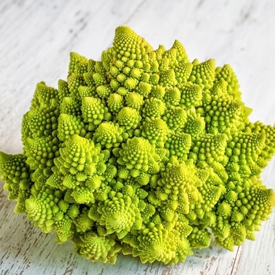 - Капуста романеско — культурный сорт капусты, по-итальянски «романеско» означает «римская». По вкусу этот сорт напоминает брокколи или цветную капусту с ореховым привкусом. Внешний вид романеско очень оригинальный и красивый, она состоит из соцветий, устроенных по принципу самоподобия и имеющих фрактальный узор и пирамидальную форму. Этот овощ можно подавать сырым, приготовленным на пару, тушёным или маринованным.