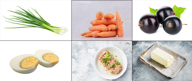 Из растительных продуктов им богата морковь, зеленый лук, черная смородина.