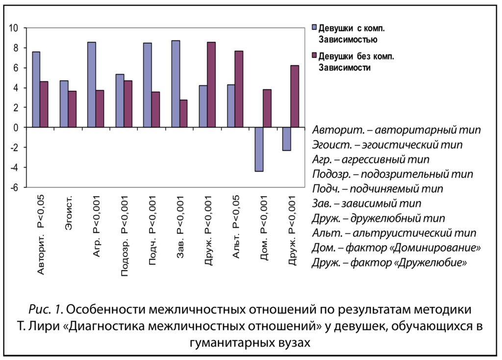 При этом значимых различий по индивидуально-личностным особенностям между зависимыми студентами гуманитарных и технических вузов выявлено не было.